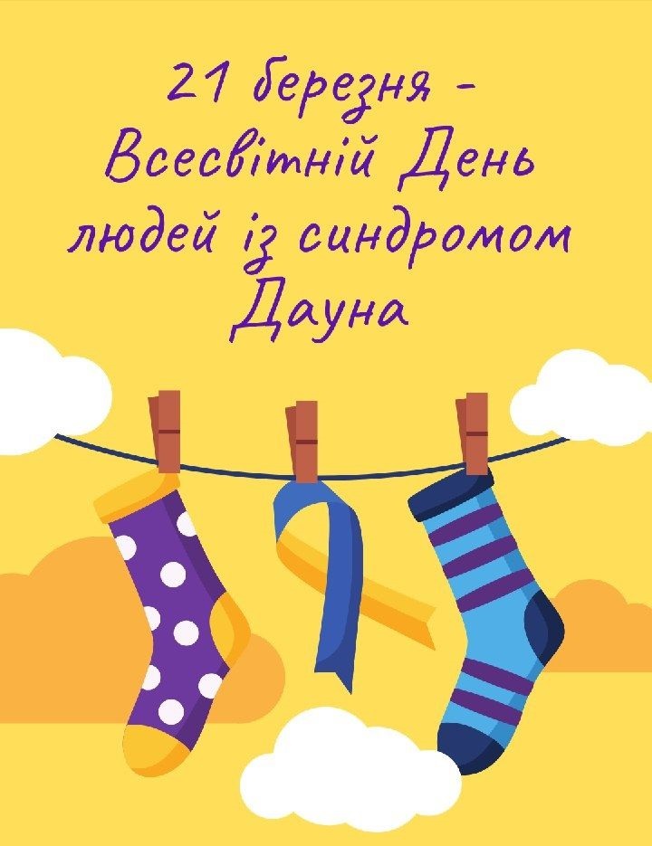 У цей день у світі проходить акція #шкарпетуйся - на знак підтримки, прийняття та поваги до людей із синдромом Дауна люди одягають різнокольорові, непарні шкарпетки.