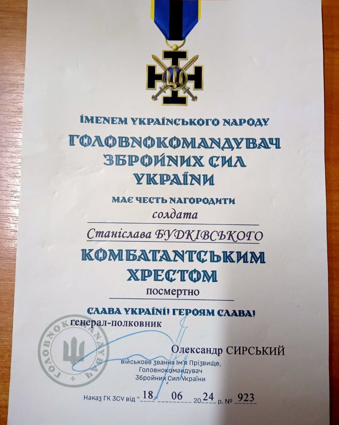 Полеглого захисника Станіслава БУДКІВСЬКОГО нагородили нагрудним знаком "Комбатантський хрест". Відзнаку вручили матері загиблого воїна