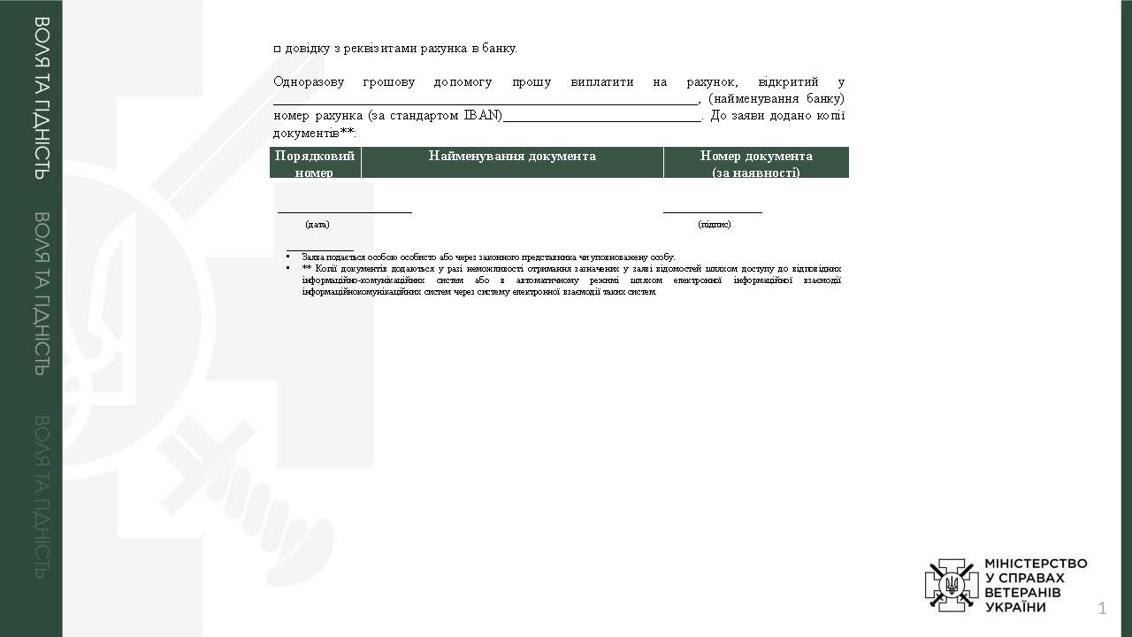 Призначення одноразової грошової допомоги у разі інвалідності волонтера внаслідок поранення (контузії, травми або каліцтва), отриманого під час надання волонтерської допомоги в районі проведення антитерористичної операції, здійснення заходів із забезпечення національної безпеки і оборони