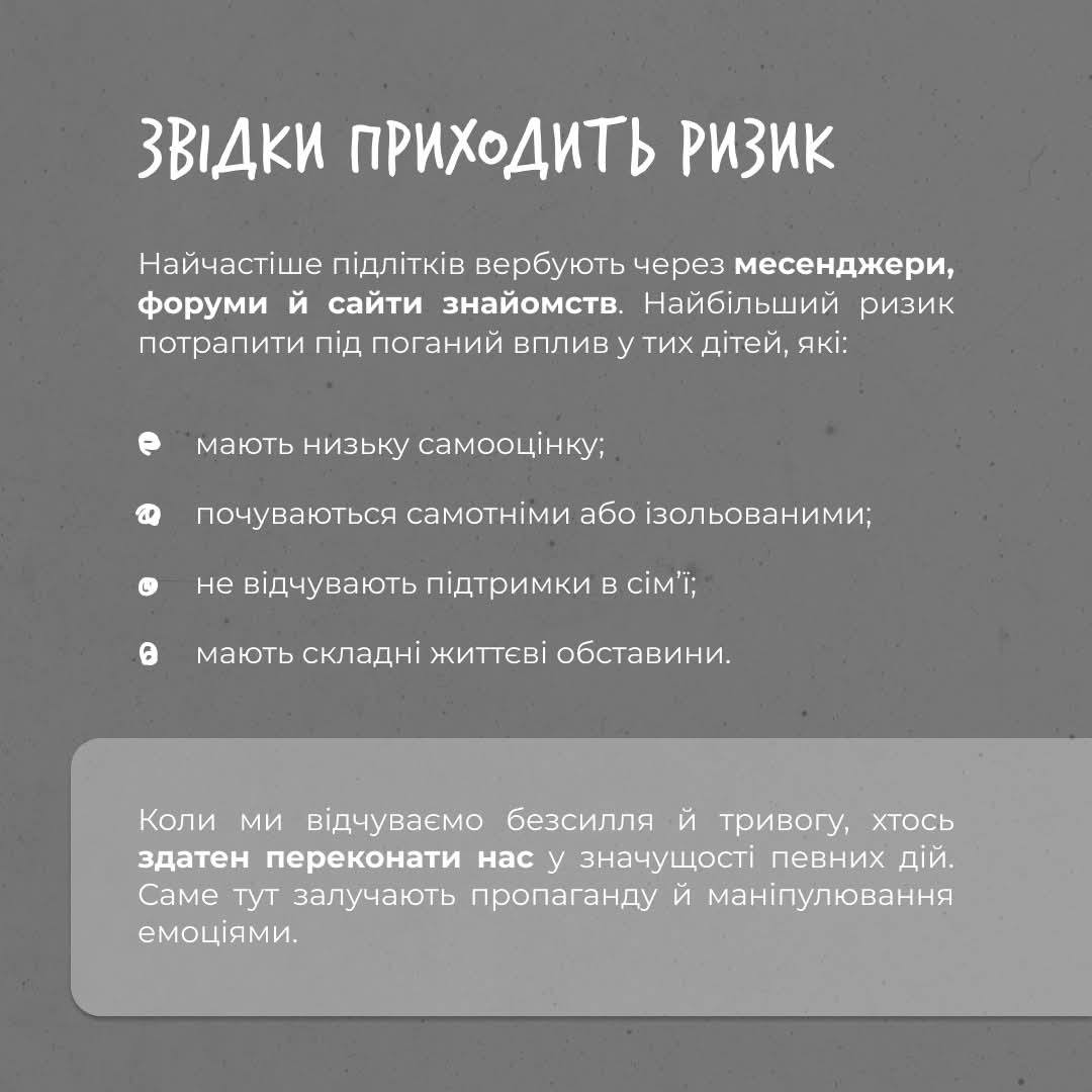 Щоб допомогти батькам і вчителям захистити молодь, Голоси дітей розпочинають серію навчальних дописів про вербування підлітків і те, як вберегти їх від можливого впливу.