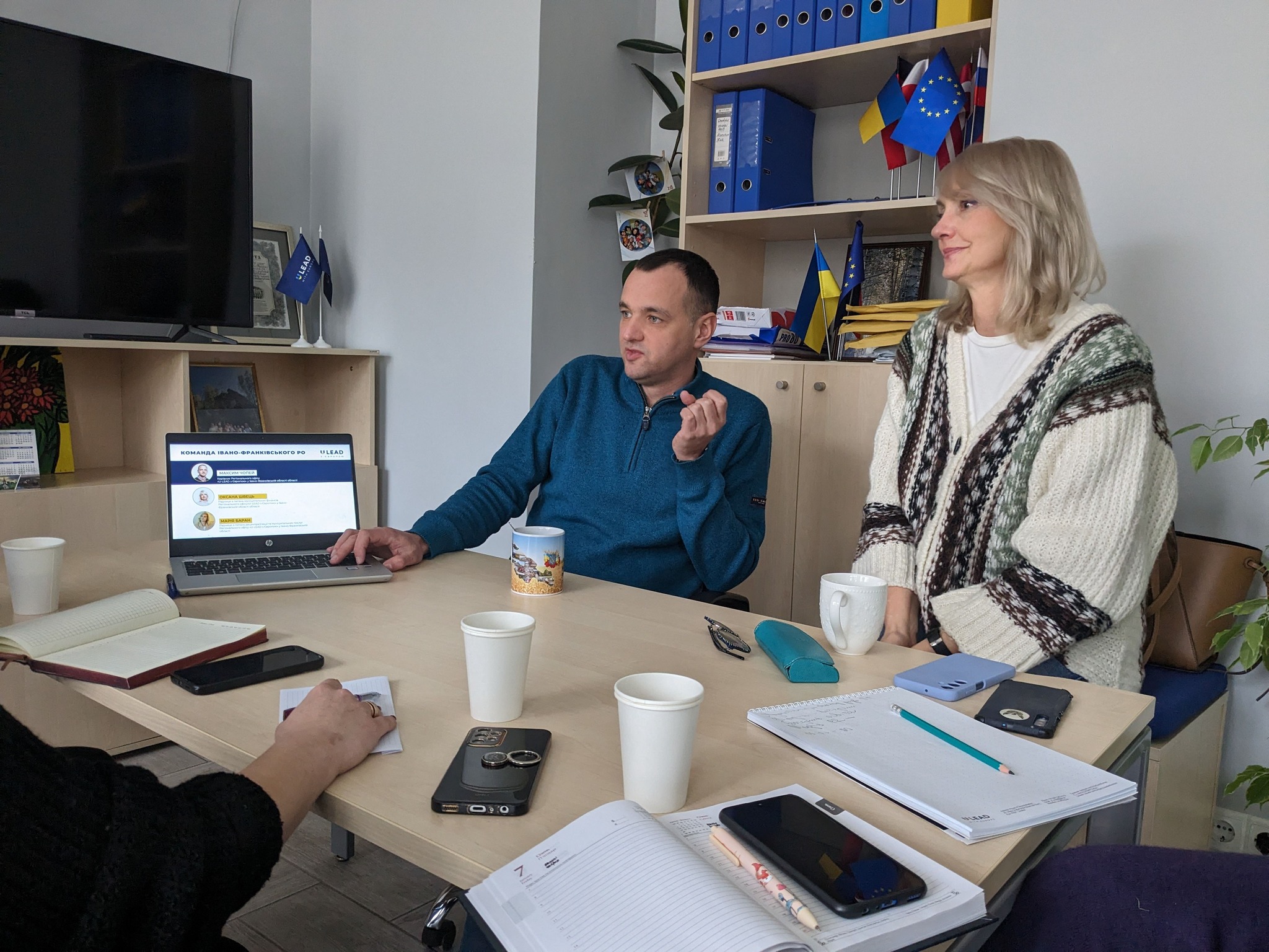 Керівник Івано-Франківського регіонального офісу Максим Чопей детально розповів про діяльність програми "U-LEAD з Європою" та про можливості, які надає програма для місцевих громад. Чим можуть бути корисними та яку допомогу надають, розповіли радниця з питань місцевих фінансів Оксана Швець, радниця з питань децентралізації та муніципальних послуг Марія Баран, адміністративна фахівчиня Надія Мельничук.