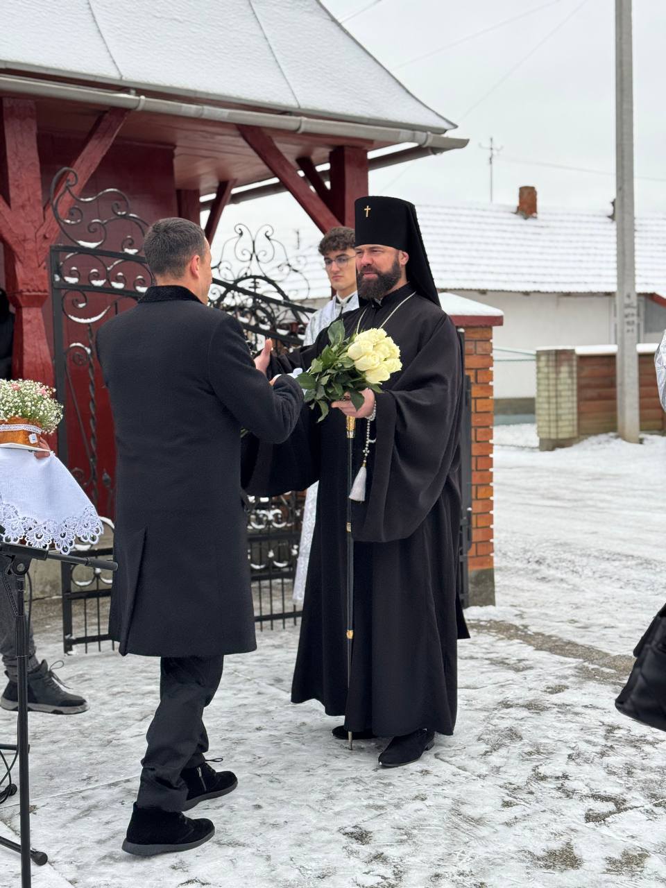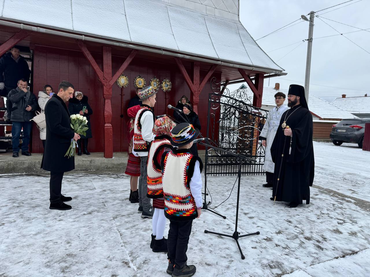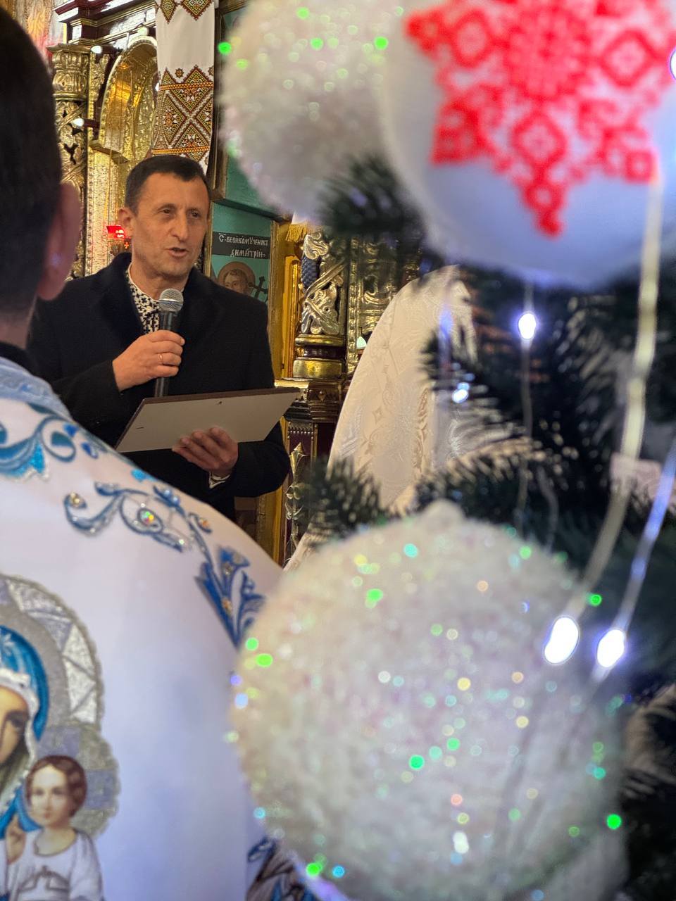 Селищний голова Igor Dovirak зі словами вдячності та шани звернувся до настоятеля храму отця Миколи, вручивши йому подяку за багаторічне служіння, милосердя, активну участь у житті громади та з нагоди святкування 45-річчя.
