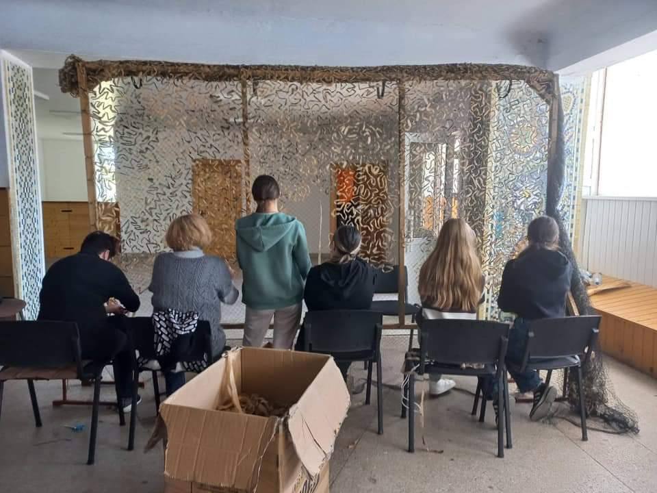 Не хвилюйтеся, якщо ви не вмієте плести маскувальні сітки, тут вам допоможуть і навчать. Також завжди потрібні люди, щоб нарізати стрічки.