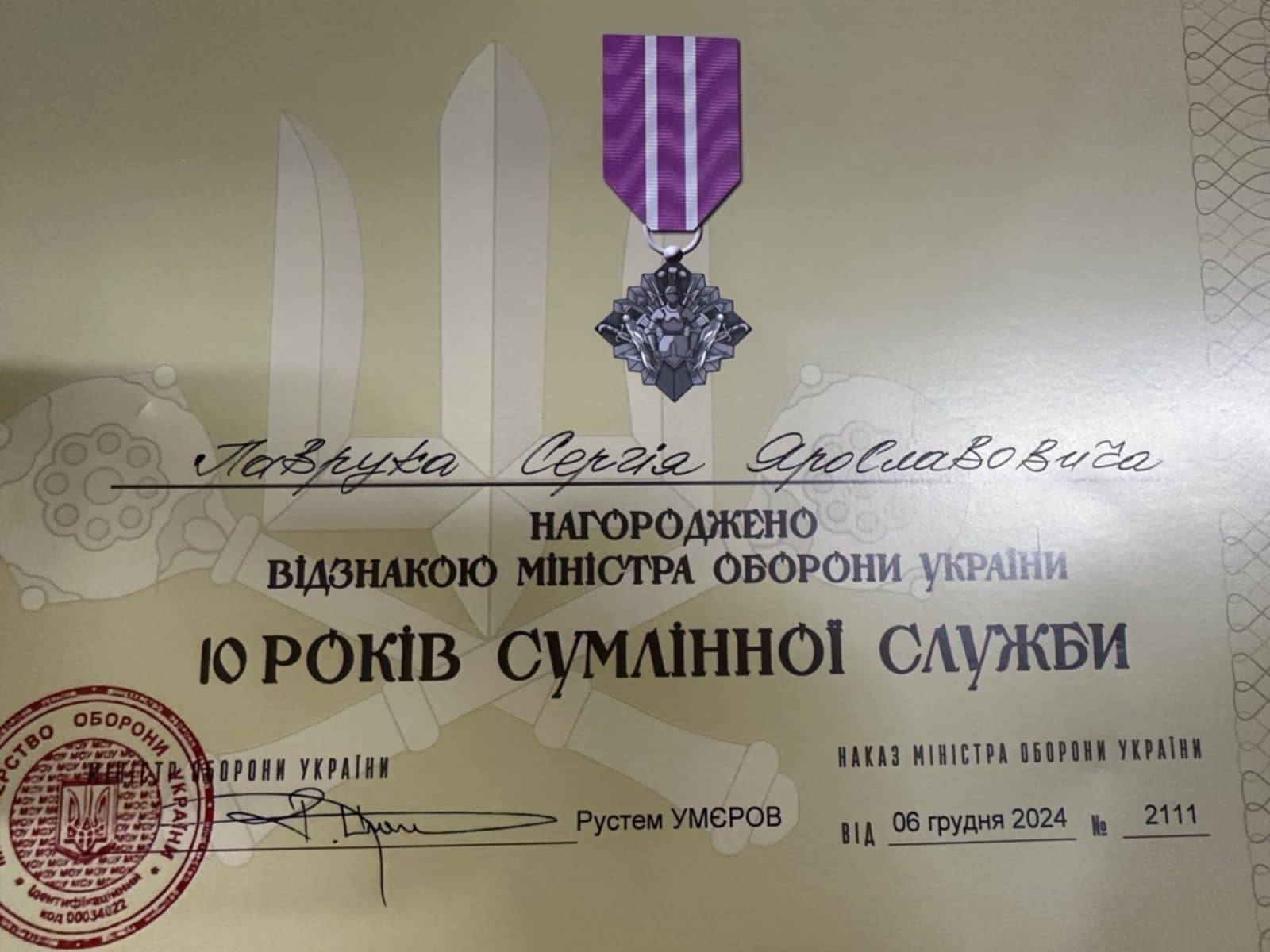 Мужній воїн також був відзначений Комбатанським хрестом та відзнакою Міністерства оборони України «10 років сумлінної служби». Він був людиною, яка служила чесно, віддано і до кінця.