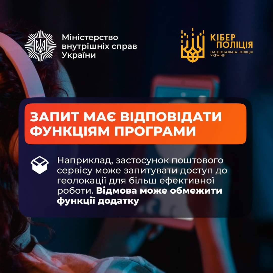 Чи варто надавати згоду на доступ до геолокації, камери, мікрофону чи списку контактів — пояснює Кіберполіція