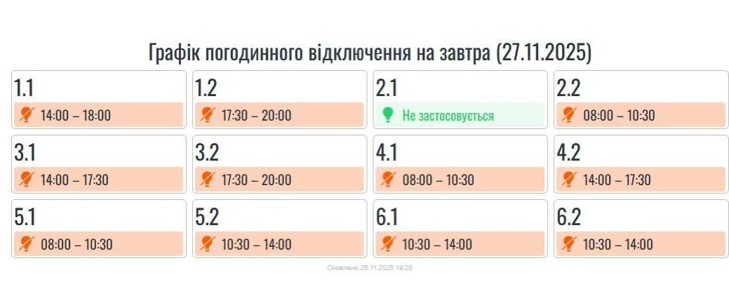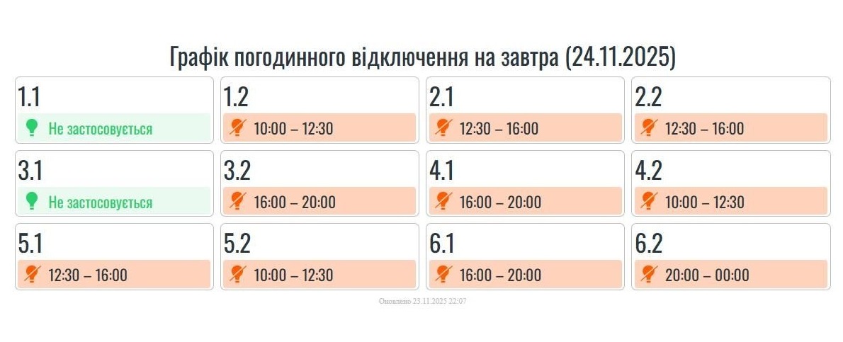 Зміни в ГПВ на завтра, 24 листопада