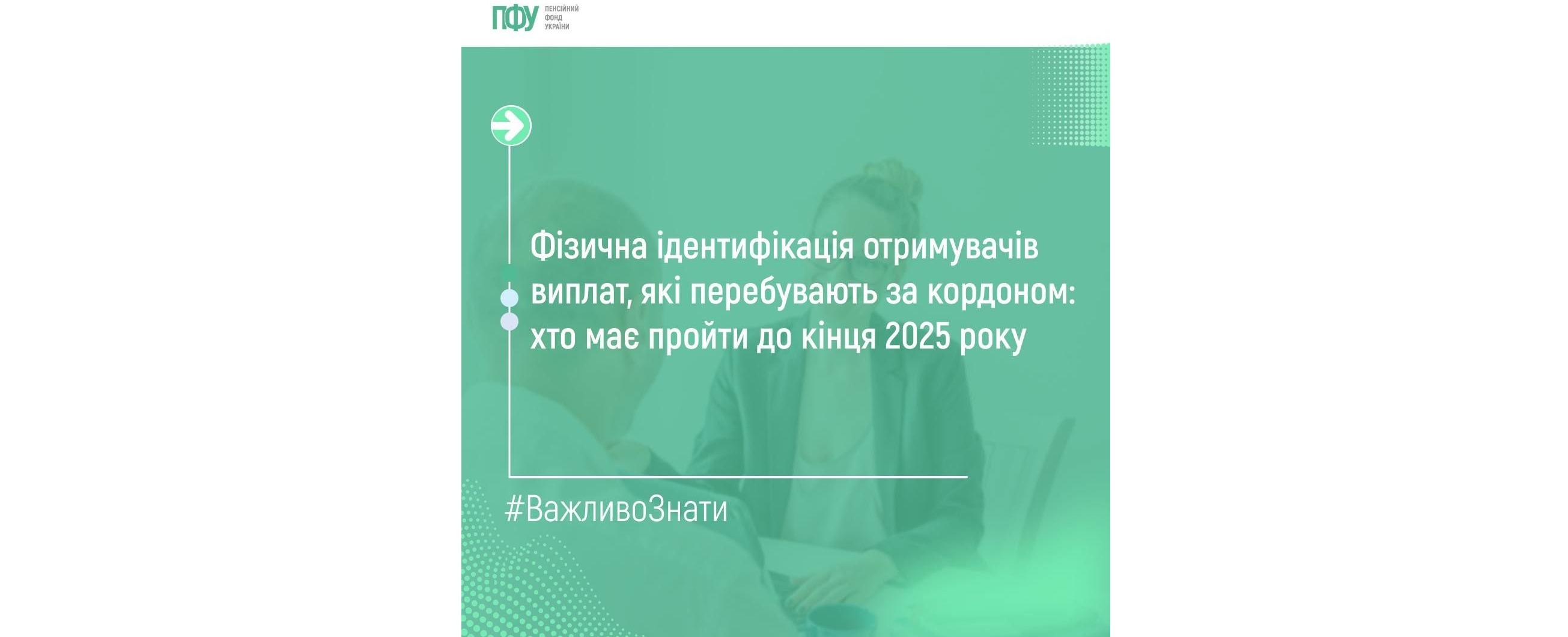 Одержувачі пенсій та страхових виплат, які тимчасово проживають за межами України, мають проходити фізичну ідентифікацію до 31 грудня кожного року